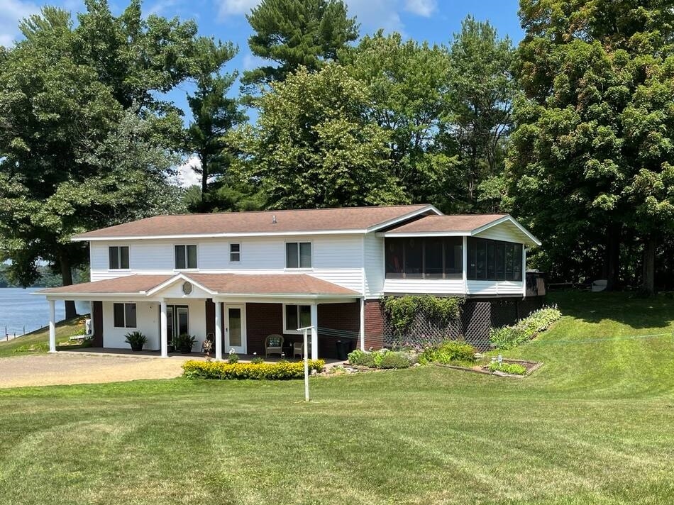 Only 75 feet from the shoreline of Lake Eau Galle, this 2800 sq ft home sits on 1.5 acres and over 300 feet along the waterfront. The peaceful property includes a firepit near the lake and mature Wisconsin native white pines, oaks, and maple trees.